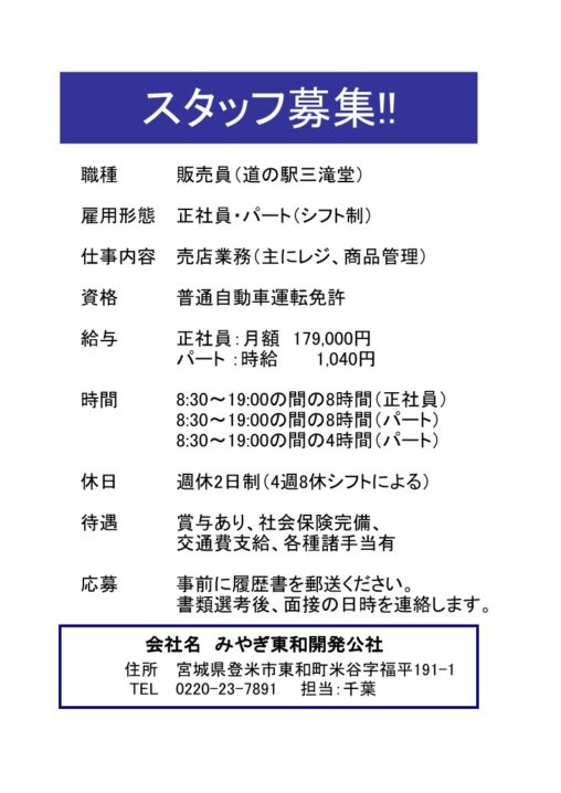 お土産品、産直野菜の販売コーナーです。登米市や南三陸町で採れた、新鮮・安心・安全な野菜をお届けしています。北上高地の自然が育んだ豊富な山菜やきのこ、北上川流域の優秀な根菜類が自慢です。新商品のずんだソフトクリームや軽食を取りそろえております。ドライブの休憩にどうぞ♪